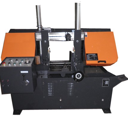 鋸床以圓鋸片、鋸帶或鋸條等為刀具,鋸切金屬圓料、方料、管料和型材等的機床。鋸床的加工精度一般都不很高,多用于備料車間切斷各種棒料、管料等型材。由主動輪和從動輪帶動鋸條運轉(zhuǎn),鋸條斷料方向由導(dǎo)軌控制架控制。通過調(diào)整自轉(zhuǎn)軸承將帶鋸條調(diào)正調(diào)直經(jīng)過掃削器將鋸削掃掉。由液壓油缸活塞桿支撐導(dǎo)軌控制架下落進鋸斷料,帶鋸床上裝有手動或液壓油缸夾料鎖緊機構(gòu),以及液壓操作閥開關(guān)等