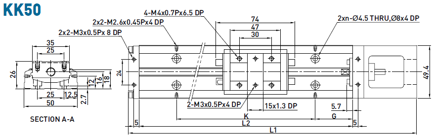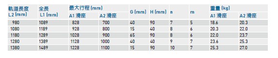 KK50導軌長度 : 150, 200, 250, 300。
