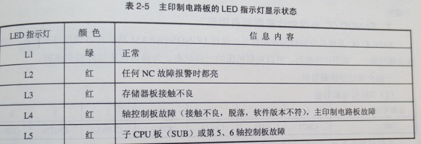 NC單元出現故障時,系統單元主印制電路板的左側LED指示燈顯示的狀態如表2-5所列。