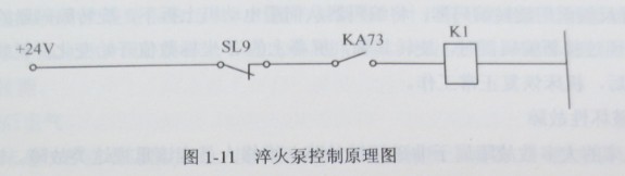 例如,一臺采用SIEMENS 810M系統的數控淬火機床,一次機床開機后,啟動淬火液泵時,泵啟動不了,但沒有報苦信息.分析機床的工作原理,淬火泵的控制原理如圖1-11所示,淬火液泵是受接觸器KI控制的,SL9是淬火液液位開關,液面沒有問題。而KA73是受PLC輸出Q7.3控制的。